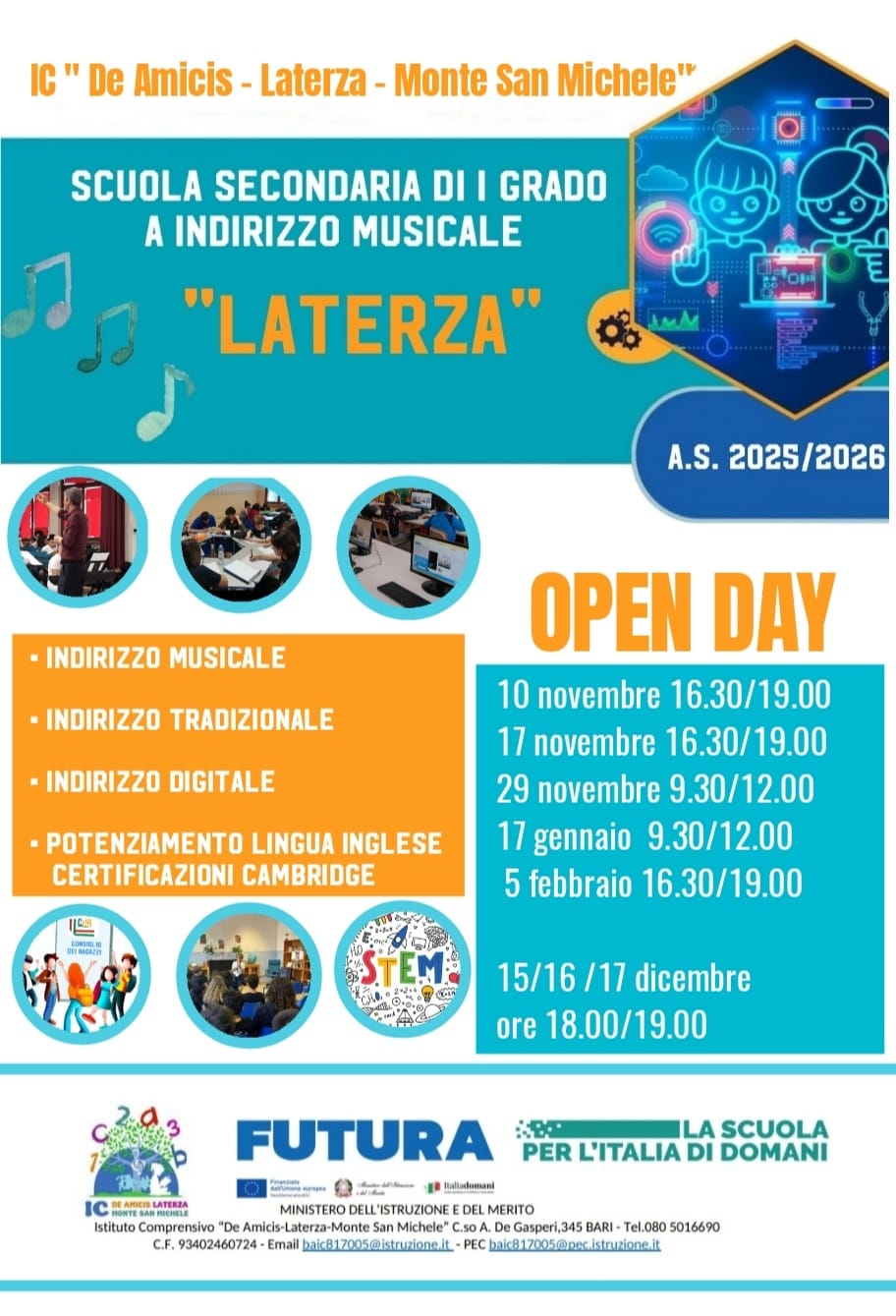 Date OPEN DAY - SCUOLA SECONDARIA DI I GRADO A INDIRIZZO MUSICALE "G. LATERZA"